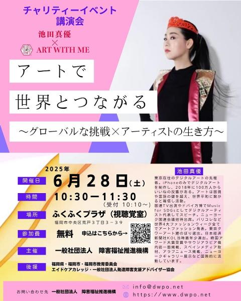 #アートでつながる #池田真優 #発達障害支援 #福祉と教育 #国際交流 #チャリティー講演会 #多様性を尊重しよう #福岡イベント情報